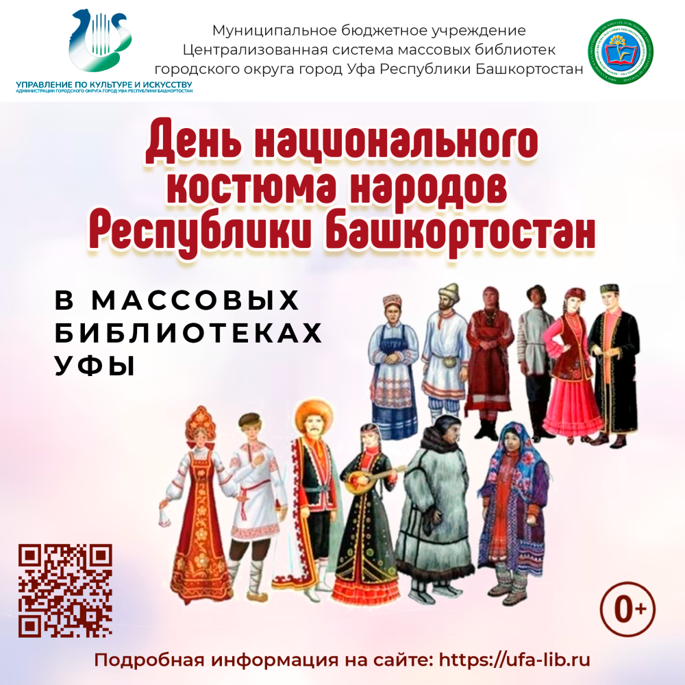 18 апреля Краеведческая мозаика «Поэзия народного костюма» пройдет в модельной библиотеке №4 (г.Уфа, проспект Октября, 9). Начало – в 12:00. Час краеведения «Костюм – наследие веков» на портале Культура. РФ проведёт модельная библиотека №13. Начало – в 14:00. Беседу «Башкирские красавицы» проведёт модельная библиотека № 26 (г. Уфа, ул. Сипайловская, 14/1). Начало – в 14:00. На искусствоведческий экскурс «Культура народа — в костюме» приглашает библиотека №15 (г. Уфа, ул. Ю. Гагарина, 37/1). Начало – в 16:00.