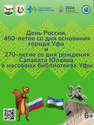 День России, 450-летие со дня основания города Уфа и 270-летие со дня рождения Салавата Юлаева в массовых библиотеках Уфы12 июня столица Республики Башкортостан отмечает сразу три главных праздника – День России, 450-летие основания крепости Уфа и 270-летие со дня рождения Салавата Юлаева. Стало уже доброй традицией в МБУ Централизованной системе массовых библиотек ГО г. Уфа РБ посвящать этим событиям ряд мероприятий. как в офлайн формате в стенах библиотек, так и на просторах Интернета. С 7 по 21 июня 2024 года во всех районах города уфимских книгочеев ждут квизы, викторины, исторические часы, обзоры книжных выставок и другие интересные мероприятия. Так, Дню России 7 июня модельная библиотека № 36 (ул. Ген. Горбатова, 3/1) посвящает викторину «Вместе мы большая сила, вместе мы страна Россия». Начало в 13:00 часов. 11 июня в библиотеке № 15 (ул. Юрия Гагарина, 37/1) пройдет историко-патриотический альманах «Любимый дом, моя Россия!». Начало в 11:00 часов. Стать участниками исторической игры «Героями славится Россия» приглашает на своем официальном сайте https://32.ufa-lib.ru/ модельная библиотека № 32. Эрудит час «Россия в сердце навсегда» пройдет в этот день в модельной библиотеке № 35 (ул. Ухтомского, 12). Начало в 12:00 часов. 12 июня модельная библиотека № 10 и библиотека № 14 выступят организаторами интерактивной площадки «Моя Россия» в парке «Волна». Начало в 14:00 часов. 450-летию со дня основания города Уфа массовые библиотеки столицы посвятили: 7 июня - Литературно-музыкальную композицию «Ах, как ты мне нравишься, Уфа!» в библиотеке № 15 ((ул. Юрия Гагарина, 37/1). Начало в 11:00 часов; - Виртуальную книжную выставку «Город над Белой рекой» на официальном сайте модельной библиотеки № 32 https://32.ufa-lib.ru/; - Краеведческую экскурсию «Живописная Уфа» модельной библиотеки № 32 на официальном сайте Культура.РФ https://www.culture.ru/live/broadcast/100176/kraevedcheskaya-ekskursiya-zhivopisnaya-ufa. Начало в 12:00 часов; - Литературно – музыкальную композицию «С верой и любовью к родной Уфе» от библиотек Октябрьского района № 15, 16 и 26 (ул. М. Жукова, 11/2). Начало в 17:00 часов. 8 июня - Познавательную программу «Об Уфе с любовью» на территории модельной библиотеки № 20 (ул. Акназарова, 24). Начало в 12:00 часов. 11 июня - Квиз «Любимый город Уфа» в модельной библиотеке № 6 (ул. Революционная, 165). Начало в 11:00 часов; - Виртуальную книжную выставку «Любимый сердцу город» на официальном сайте библиотеки № 23 https://23.ufa-lib.ru/ ; - Исторический экскурс «Мой белый город, ты цветок из камня» от библиотеки № 25 на официальном сайте Культура.РФ https://www.culture.ru/live/broadcast/99803/istoricheskii-ekskurs-moi-belyi-gorod-ty-cvetok-iz-kamnya. Начало в 12:00 часов; 12 июня в Саду культуры и отдыха имени С. Т. Аксакова состоится городской семейный фестиваль «Люблю тебя, мой город». В программе: презентация книг уфимских писателей Анатолия Чечухи и Аллы Кузьминой, литературная импровизация «Не книжная фактура», выставка Марии Шубиной «Рисую Уфу», мастер-класс по рисованию от автора выставки, книжная галерея «Городу посвящается», выставка работ победителей фотоконкурса «Город в объективе» и награждение победителей, различные мастер-классы, игровая зона, ремесленная выставка, буккроссинг, запись в библиотеки города и многое другое. Мемориальный Дом-музей С. Т. Аксакова представит гостям интерактив по истории Уфы и семьи Аксаковых. Каждый желающий сможет оставить «Признание Уфе в любви» на стенде поздравлений, кото