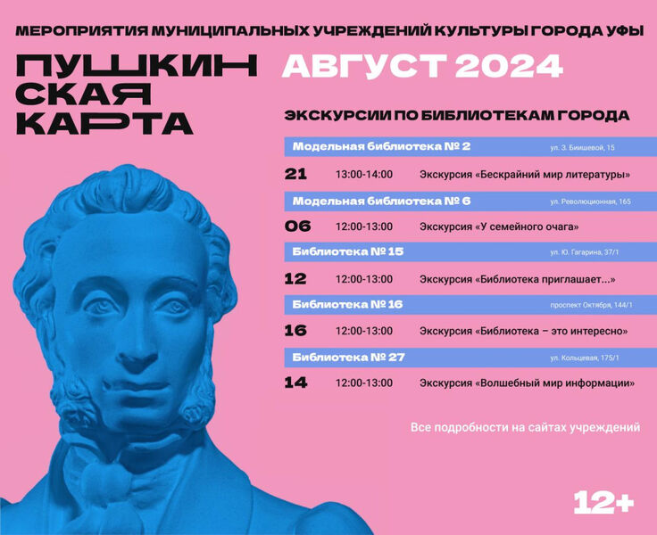 Приглашаем Вас на интересные экскурсии в массовые библиотеки Уфы в августе!
