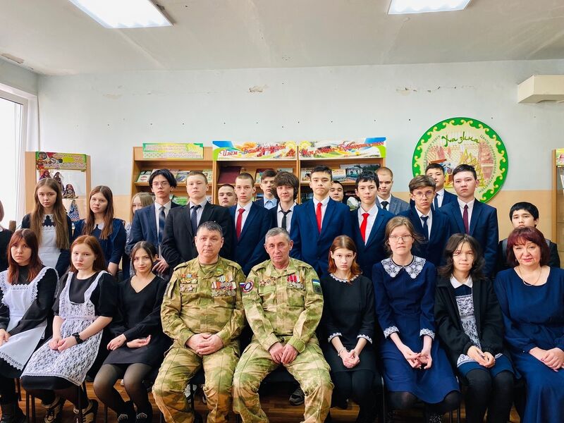 Урок мужества«Герои нашего времени»В Модельной библиотеке № 26 состоялся урок мужества «Герои нашего времени», ставший важным событием в патриотическом воспитании подрастающего поколения. Гостями встречи стали Гарипов Флюр Ахатович и Хамзин Урал Анасович, участники боевых действий и Специальной Военной Операции, чей опыт и личный пример стали вдохновляющим уроком для учеников 8 класса МАОУ Школы № 37 им. Героя Советского Союза В.Г. Недошивина. В ходе встречи герои поделились своими мыслями о любви к Родине, о необходимости её защиты и важности быть патриотом своей страны. Их рассказы были наполнены искренностью и глубоким пониманием долга перед Отечеством. Ребята проявили живой интерес к мероприятию, задавая многочисленные вопросы гостям. Их интересовало всё: от значения наград на груди героев до трудностей, с которыми им пришлось столкнуться в зоне СВО. В конце мероприятия почтили память тех, кто отдал свою жизнь защищая Отечество минутой молчания. Подобные мероприятия играют ключевую роль в формировании гражданской позиции молодежи и укреплении чувства патриотизма.