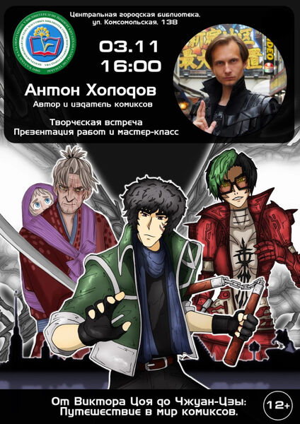 В Центральной городской библиотеке г. Уфы пройдет встреча с томским автором и издателем комиксов Антоном Холодовым03 ноября 2023 года в Центральной городской библиотеке г. Уфы пройдет творческая встреча с автором и издателем комиксов, а также путешественником по Японии Антоном Холодовым из города Томска. Антон расскажет о своих работах и поделится интересными историями, накопившимися за многие годы жизни в Токио и общения с выдающимися деятелями индустрии манги и аниме. На встрече вы познакомитесь с новинкой автора - историей «Последний Герой», которая представляет собой вольное продолжение приключений персонажа Виктора Цоя из кинофильма «Игла» в стилистике японской манги и аниме той эпохи. Также Антон расскажет об источниках вдохновения, отсылках на творчество актёра и музыканта, процессе создания работы с ранних концептов до итогового результата, а также о других своих комиксах, которые рассчитаны на самый широкий круг читателей разных возрастов: от милой японской сказки до эпичного техно-фэнтези по мотивам китайской философии. Участников мероприятия ждёт небольшой мастер-класс по раскадровке и созданию персонажей, интересные упражнения, подходящие даже для тех, кто не владеет навыками рисования. Начало в 16:00 часов. Ссылка на официальную страницу Антона Холодова в социальной сети ВКонтакте https://vk.com/kholodov_arts . Справка